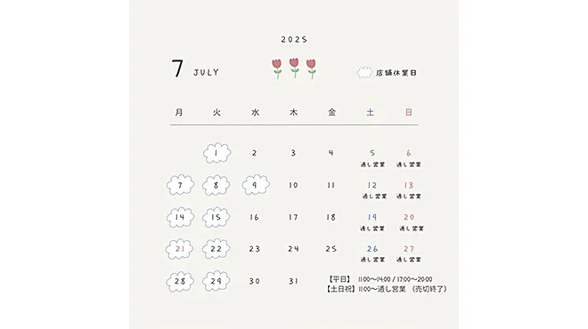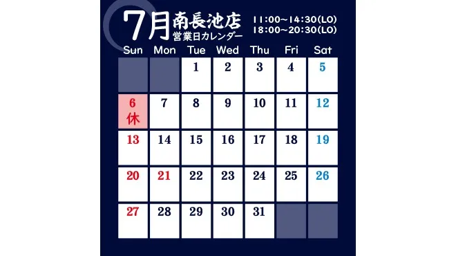 麒麟児本店、麒麟児大門店、麒麟児南長池店の7月の営業日をお知らせいたします。